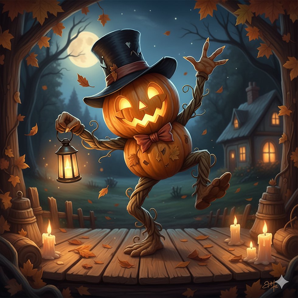 I wonder why only the young pumpkins get to dance? Is that because the older pumpkins already got their faces chewed off by hungry squirrels? (From Absolutely Free)